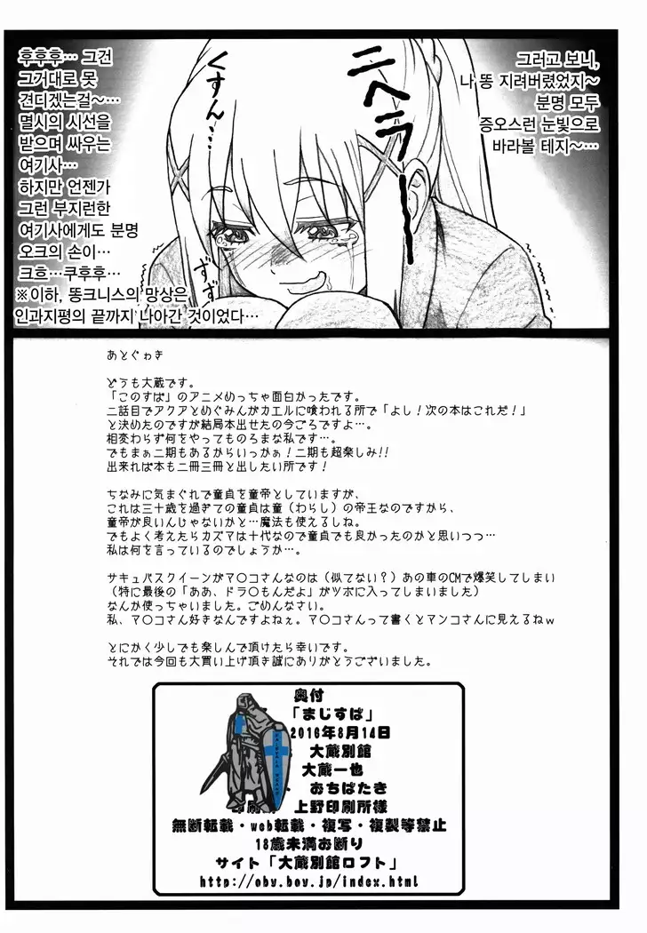 (C90) [Ohkura Bekkan (Ohkura Kazuya)] Majisuba (Kono Subarashii Sekai ni Syukufuku o!) [English]