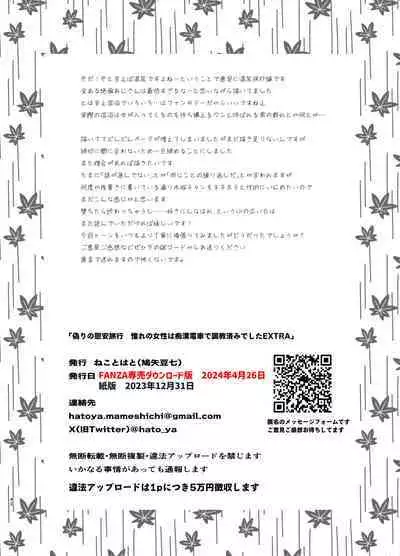 [Neko to Hato (Hatoya Mameshichi)] Akogare no Josei (Sensei) wa Chikan Densha de Choukyouzumi Deshita Shokohen + 4.5 + 2017Muhaisasshi Paper Illustration